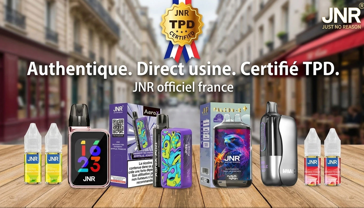 Fondée en 2023, JNR (Just No Reason) est aujourd'hui une marque mondiale de référence dans l'univers de la cigarette électronique rechargeable. En tant que JNR Officiel France, nous sommes le distributeur direct depuis l'usine d'origine, garantissant des produits 100% authentiques aux meilleurs prix du marché. Notre site — le site officiel JNR — est le seul canal autorisé pour l'achat de vapes JNR en France. Méfiez-vous des revendeurs non officiels : seul le JNR official website garantit l'authenticité, la conformité TPD et le service après-vente. Classés #2 en Europe en volume de ventes, nos dispositifs jnr vape couvrent tous les profils de vapoteurs : du débutant cherchant sa première puff rechargeable à l'expert en quête du JNR Flux Pro avec intelligence artificielle. De la R&D à la livraison, JNR contrôle toute la chaîne pour vous offrir une expérience sans compromis.